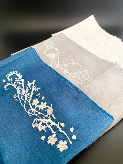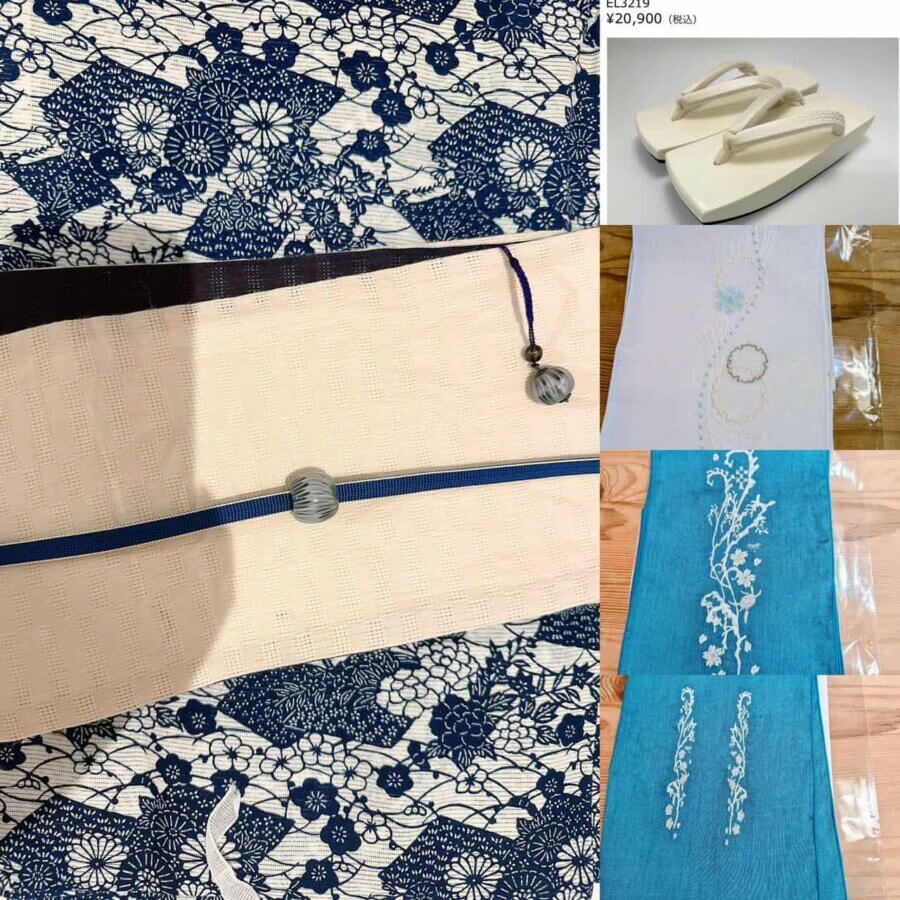 第二期は「富士商会」のペタコさんとのコラボレーションでオリジナルの半衿・帯揚・鼻緒を制作しました。
