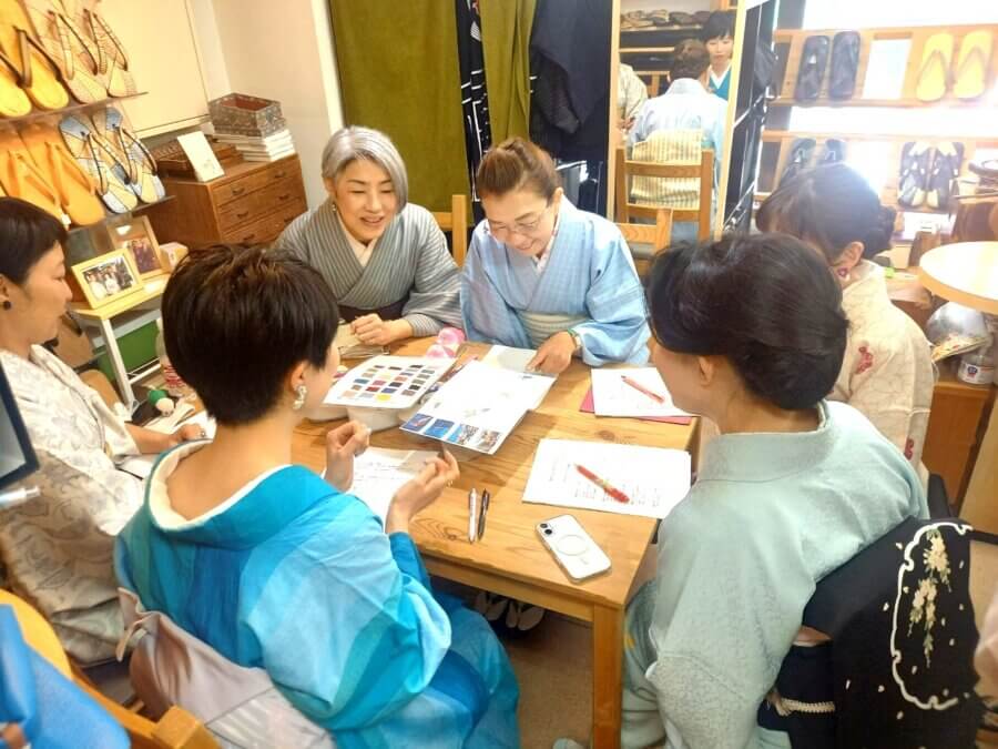 着付け教室や呉服店などでは聞けない、かなり専門的な和装履物のお話を店主・富田里枝、仕入れ担当・辻正惠、挿げ職人・小林良隆が講義します。